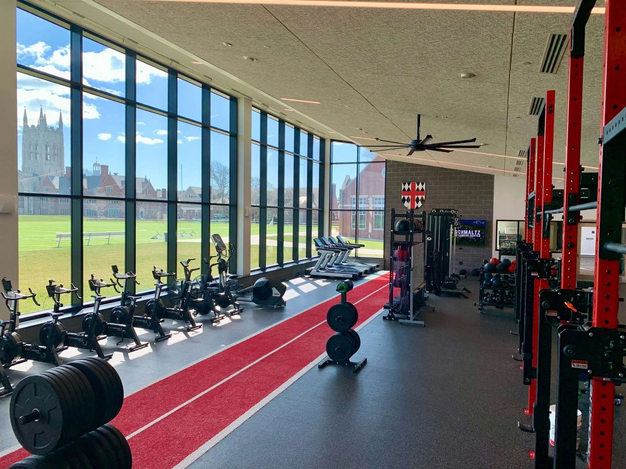 You will have access to our full wellness facility. Outfitted with top of the line Rogue, Concept2 and other equipment, this includes cardio machines, an eight-station rig with accompanying barbells, dumbbells, kettlebells, cable machines, and more! In addition, programs can take place in the adjoining field house, wood court, turf fields and other campus facilities.